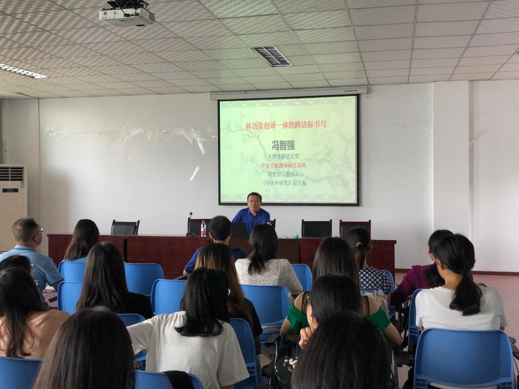 6月13日下午2:30,明辨楼1-604学术报告厅座无虚席。天津外国语大学中央文献翻译研究基地研究员冯智强教授为我院师生带来了题为“林语堂创译一体的跨语际书写”的学术讲座。
